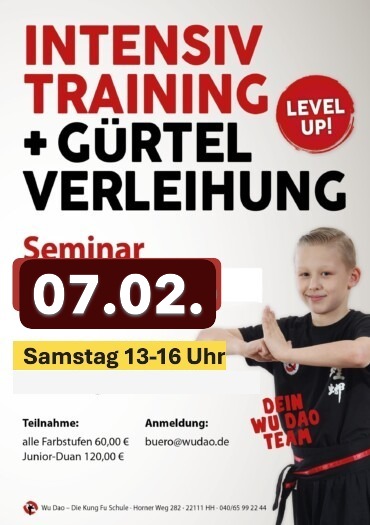 Erfüll Dir Deinen Wunsch von der nächsten Kung Fu Stufe und mache mit bei unserem Intensivtraining im Februar. Anmeldung: buero@wudao.de oder am Tresen