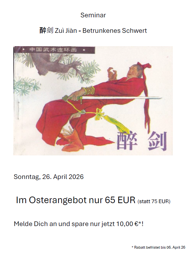 Erlebt und erlernt die Techniken des "Betrunkenen Schwerts" in Tradition unseres Altmeisters Zhang Wan Fu. Unterrichtet wird das ganze von unserem "legendären" Shifu… |